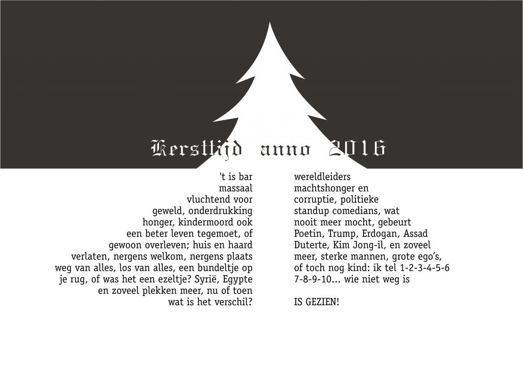 Het werkt, althans bij mij, enigszins bevreemdend, dat wij massaal de geboorte vieren van een mensenkind langgeleden in een stal, omdat de ouders nergens onderdak konden krijgen, terwijl wij in het nu tegelijkertijd en even massaal vluchtelingen de rug toekeren, de deur dicht houden. Zij zijn niet welkom.